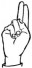 На ћирилици написано ЛАБУДА БАТИНА састоји се из 12 слова [?]. Исписано ћириличном једноручном азбуком за глувонеме: